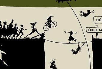 Visuel “Précipice” par Quat’Rues pour la campagne POUR TOUS d’Oxfam
