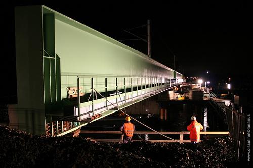 Après deux heures de ripage, le viaduc arrive bientôt à mi-parcours.