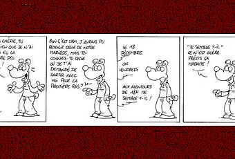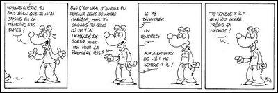 - clic pour agrandir- Dans l'album (Inch'Allah), je considère qu'il y aura deux sortes de strips : des strips qui fonctionnent parfaitement tous seuls et des strips qui s'inscrivent dans la continuité du précédent, faisant ainsi lien avec les autres. Il y aura aussi des strips plus "gags" où l'humour est plus visuel et d'autres qui touchent beaucoup plus à l'émotion même si, en un strip, c'est difficile à faire passer (tout le monde ne s'appelle pas Bill Watterson (dessinateur de Calvin et Hobbes)