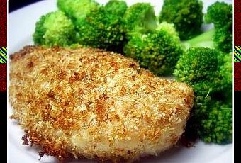 J'aime beaucoup les panés, mais moins la grande quantité d'huile qu'ils absorbent généralement... Un inconvénient que l'on peut éviter en les cuisinant au four, sans ajout de matière grasse, comme dans cette recette découverte dans un numéro du mensuel américain Everyday Food. Un petit plat simple, léger et savoureux, relevé par le goût typé du fromage de brebis italien (que l'on peut remplacer par du manchego, son frère jumeau ibérique)...