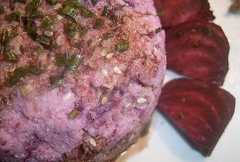 Visuellement c’est assez réussi, de loin, avec la belle couleur rose de la betterave on pourrait même penser que c’est un tartare de bœuf !