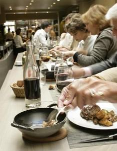 Une petite salle tout en longueur, moderne et sobre, avec un comptoir sur lequel sont dressés la moitié des couverts. On y commande des cocottes (d’où le nom), des verrines, des petites portions de plats “simplement bons”, des veloutés de légumes excellents l’hiver. On y croise des japonaises raffinées et apprêtées, des cadres trentenaires, des pubeux, des filles de la mode, des peoples, le tout dans une joyeuse décontraction. C’est bon et c’est vraiment très abordable (une vingtaine d’euros / personne). Une réussite signée Christian Constant, qui officie aussi à côté, au Violon d’Ingres, son grand restaurant.