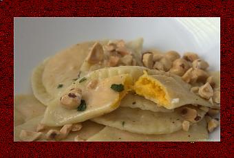 J’ai opté pour des pâtes farcies, il ne restait plus qu’à trouver la farce… Je leur ai déjà servi dans le passé des pâtes farcies aux champignons. D’ailleurs si je me souviens bien, je les avais même cuisinées avec Carl. Je n’allais pas récidiver une deuxième fois… J’ai pensé à une farce aux épinards, mais ça ne m’excitait pas vraiment. Encore une fois, je me suis tournée vers mes innombrables livres de recettes! Ça tombe bien, j’ai une collection de livres de cuisine italienne! Je suis tombée sur la recette de pâte farcies à la courge. J’en ai jamais mangé et encore moins cuisiné mais ça sonne bien vous ne trouvez pas? Pourquoi ne pas essayer!