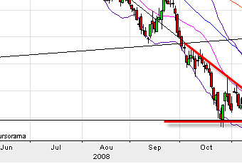 La pression haussière se fait sentir, la moyenne mobile 20 jours est testé et devrait céder ce qui devrait relancer la donne et l’euro vers un premier objectif à 1.35 qui correspond à la moyenne mobile à 50 jours en bleu sur le graphique. Pour le moment on parlera de rebond technique et non de reprise durable. On attendra quelques chandeliers supplémentaires pour se prononcer. La hausse des marchés actions devrait également permettre à l’euro de s’apprécier à nouveau face au dollar et aux matières premières de rebondir après les excès baissiers.