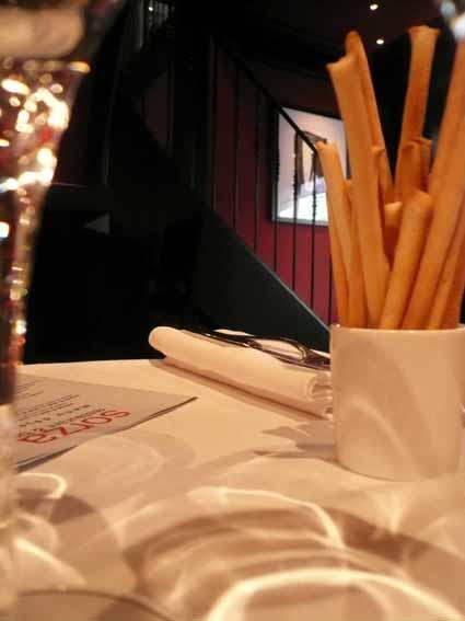 Ci-gît le 23 Mazarine dont on avait prédit qu’il ne passerait pas l’hiver. Il avait cru nous épater avec son sushi d’endives au foie gras et son filet de bœuf aux huîtres et à la réglisse mais le propos était tellement hors sujet que ce fut rapidement la débandade jusqu’à ce que le panneau « bail à céder » apparaisse sur la vitrine. L’adresse laminée, il fallait une bonne dose d’héroïsme aux repreneurs pour tenter de faire oublier la parenthèse « cuisine has been ratée ». Alors certes, le retour dans la sphère des tables recommandables ne se fera pas en quelques jours mais Sorza semble sur la bonne voie en tablant sur une carte italo – provençale classique de chez classique proposée dans un cadre lounge en rouge et noir comme à la grande époque de Jeanne Mas. Ca manque encore de peps dans la voix, dans l’accueil, dans le sourire mais la satisfaction des clients devrait permettre à l’équipe de se libérer alors qu’elle semble presque s’excuser de servir un velouté glacé de petits pois et huile de noisette. Or, il tient la route ce velouté tout comme le soufflé au parmesan et roquette. Petit bémol pour le risotto forestier aux champignons. Attendu comme il se doit, il se présente avec générosité mais légèrement trop salé. Pas de quoi l’abandonner dans le coin de l’assiette mais on attend avec impatience la note sucrée pour calmer le palais. Elle finit par pointer sa tenue gélatineuse, la panna cotta aux deux coulis. Exercice aussi périlleux que le risotto que le chef passe finalement sans encombre.