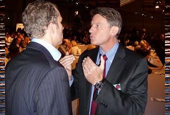 Images du congrès de Reims : Arnaud Montebourg(Aubry)…et Vincent Peillon (Royal). Photos JCH