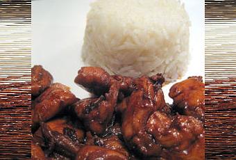 Faites chauffer le wok avec environ 2 càs d'huile. Faites-y revenir l'ail en secouant pour que ça fonde et pas que ça crame, une petite minute. Puis jettez-y le poulet et l'oignon, faites revenir allègrement. Enfin, ajoutez le caramel, et mélangez quelques minutes, histoire que le poulet soit bien enrobé. Voilà, c'est prêt! Accompagnez de riz bien sûr et éventuellement de petites graines de sésame. N'ayez crainte pour la dose d'ail, vous pouvez y aller car le caramel adoucit le goût! Un pur délice, et encore meilleur qu'au resto à domicile (qui eut cru que ce fut possible?)