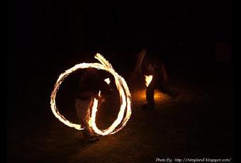 Une photo de bolas enflammées de nuit, Jongleur la Fouine :