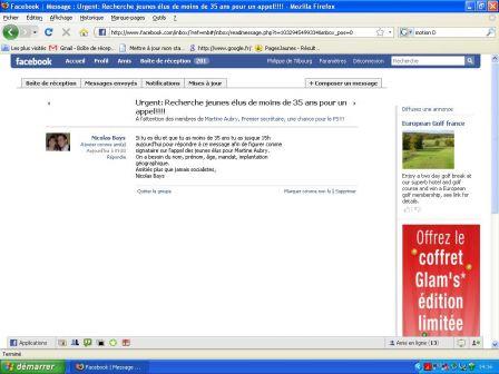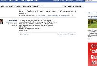 Drame cruel dans la politique 2.0 . Voici un appel de l'équipe de Martine Aubry pour se procurer des jeunes élus.. Tout ça pour faire un appel des jeunes à voter pour elle. Le grotesque de la situation méritait d'être dénoncé.
