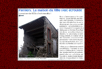 Mauvais temps pour les affaires, à moins que d'aucuns n'y voient là l'opportunité de créer quelques places de parking supplémentaires… Mauvais temps aussi pour l'image de la ville, dont une maison du XIIIe renforçait son ancrage dans l'histoire du pays. Louis Claeys, ardent défenseur des vieilles pierres, monte au créneau : « C'est un mauvais coup supplémentaire porté au patrimoine de notre ville. On peut toujours invoquer la fatalité, mais nous ne voulons pas nous en contenter. La mairie porte une lourde responsabilité dans cette perte. Par négligence, faute d'avoir pris les mesures nécessaires de préservation. Pourtant, la Société historique avait, depuis le début, tiré le signal d'alarme. Beaucoup attendaient ce coup du sort pour tirer une épine du pied, de la municipalité. Alors, une fois de plus, nous attirons l'attention sur ce qui nous reste de patrimoine : l'église du Camp, dont une fissure inquiétante s'est faite entre nef et clocher, la tour des Augustins qui pourrait bien subir le même sort, si l'on ne fait rien. Sans parler de l'ancienne recette des finances faute de voir arriver le projet immobilier, véritable serpent de mer. Le patrimoine de Pamiers n'en finit pas de souffrir du manque d'intérêt de la majorité sortante. »