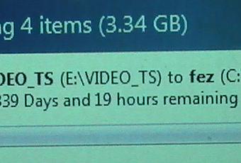 En effet, pour transférer 3.34 Giga de données, Windows Vista estime environ… 5339 jours d’attente, soit plus de 14 ans.