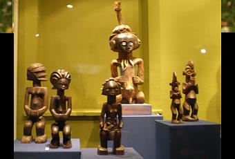 Les pièces collectées le furent auprès des populations Senoufo, Dan et Wé ; mais l'université possède également de beaux objets d'Afrique Centrale tels ceux que l'on aperçoit dans la première vitrine.