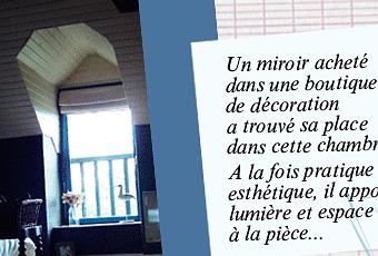 Dans cette chambre, charme et authencité sont de mise même si des travaux restent à faire. Pour s'harmoniser avec l'ensemble, un miroir en bois de chez Deci-delà est posé sur le sol afin d'apporter grandeur et lumière à la pièce. Une chaise récupérée dans un grenier a pris place au bout du lit....