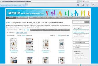 Je viens de découvrir un site qui fait mes délices depuis : Newseum. Il permet de consulter les unes de plus de 500 quotidiens du monde entier et renvoie même au site Internet de chacun d'entre eux.