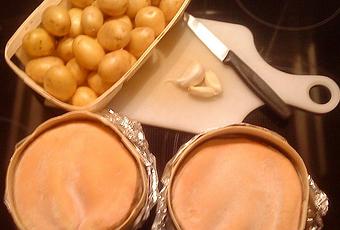 Le Vacherin Mont-d'Or “au four” est prêt. En puisant à la cuillère, servez-le sur des pommes de terre en robe des champs.