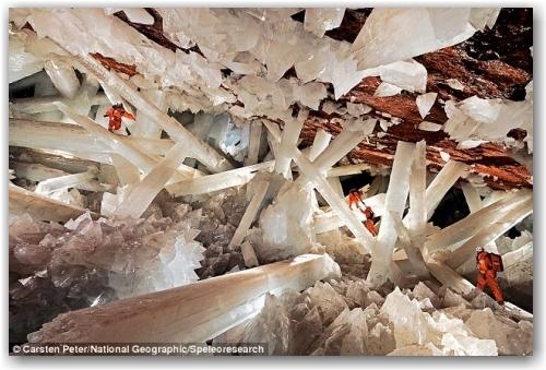Découverte par deux frères qui bossaient dans une mine d’argent dans le desert de Chihuahua, cette cave contient les plus grands cristaux jamais découverts sur terre.