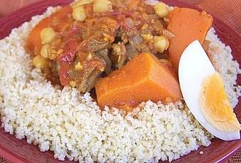 Servir ce plat très chaud, sans attendre avec de la semoule à couscous et décoré de quartiers d'oeufs durs.