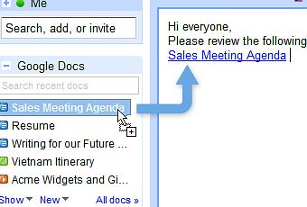 Il y a quelques semaines, Gmail ajoutait dans sa section Labs la possibilité d’intégrer sur l’interface de Gmail des gadgets de l’agenda Google et de Google Documents. Ces gadgets vous donnent accès rapidement à ces applications de la suite de Google. Or, une astuce publiée sur le blogue de Google Documents nous démontre de quelle façon le gadget de Google vous permet de lier rapidement un document à un courriel.