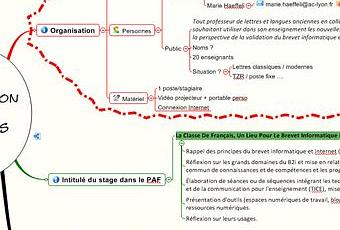 Je rajouterai que la très grande souplesse des cartes heuristiques sur ordinateur favorise vraiment le travail d’équipe : lors de la dernière réunion de travail avec ma collègue, j’ai pu ainsi modifier/compléter mon travail à la volée, en quelques clics, et quelques déplacements de branches : que de temps gagné ….