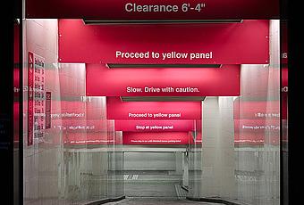 Les photos de Patrick Mimran, au Passage de Retz jusqu’au 4 janvier, vous frappent en plein dans la gueule. Ce sont, au rez-de-chaussée de cet endroit un peu revêche, de grandes photographies picturales aux couleurs saturées, éblouissantes, factices, tape-à-l’oeil. Mimran prend des morceaux de ville (Prélèvements Urbains) et s’efforce d’y décoder, ou d’y projeter du sens, des codes qui lui sont propres, pas nécessairement très subtilement : il y a au moins trois fois le mot ‘chtonien‘ pour décrire l’entrée d’un parking. Ce n’est pas une révélation du réel, mais une transformation-déformation. J’y ai davantage vu de la décoration grand format que beaucoup de sens, Mimran est un peu l’équivalent photo de Jeff Koons.