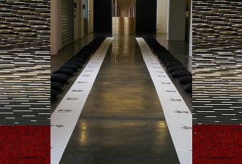 Le dessert servie sur quatre plateaux différents : le premier comme un manchon, le deuxième de longs gants sont fixés au plateau.