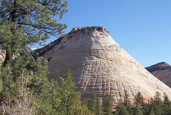 A l'entrée Est du parc national de Zion, le paysage a complètement changé. Et la première chose que l'on découvre, c'est Checkerboard Mesa, autrement dit la montagne en damier, également appelée l'échiquier. On comprend immédiatement pourquoi !
