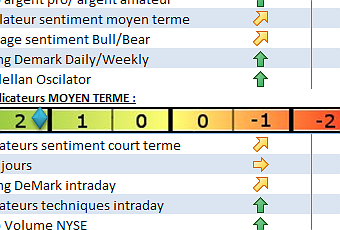1) Le marché parvient à dépasser les résistances CAC 3080/100 et S&P 827, si ces niveaux deviennent support les acheteurs auront repris la main à court terme. 2) La zone CAC 3200/250 et S&P 860/70 est contrôlée par les acheteurs (devient support) et les vendeurs ne parviennent pas à la rejeter. Dans ce cas les acheteurs reprendraient le contrôle à moyen terme.