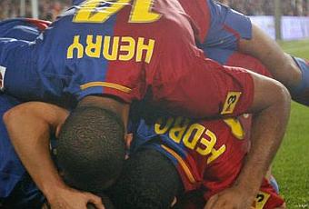 Au retour des vestiaires, les Catalans conservaient leurs intentions offensives mais avaient du mal à se montrer dangereux. A la 62ème minute, Piqué reprenait un corner de Xavi de la tête et envoyait le ballon à quelques centimètres du poteau d'Abbondanzieri.