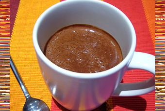 Ajoutez le lait à ce concentré et mélangez toujours à l’aide du fouet. Réchauffez sur feu moyen jusqu’à ce que le chocolat soit chaud (fumant) mais sans porter à ébullition. Donnez un dernier coup de fouet. Servez accompagné d’un verre d’eau ou vous pouvez à part faire chauffer un peu de lait supplémentaire et le rajouter à la tasse si vous le trouvez trop fort.