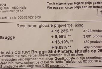 Cette comparaison est indiquée sur le ticket de caisse, qui chez Colruyt est en format A5 et est une facture.