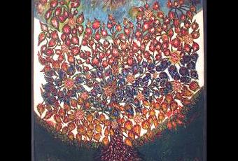 Mais après, quel foisonnement ! quelle luxuriance ! quel embrasement !... avec les grandes huiles sur toile qu'elle commence à peindre au cours de cette même année (ci-contre, "L'arbre de vie", 1928) on entre dans un univers à la fois très proche de celui que l'on connait et de celui qu'elle devait côtoyer lors de ses longues marches dans la campagne du côté de Senlis (lilas blancs, chardons bleus, grandes marguerites, fleurs, bourgeons, branches, arbres, feuilles, fruits ...) et à la fois très lointain tant la végétation est simplifiée, concentrée dans son essence même, superposée, réinterprétée (dans certains cas, on croit même reconnaître des végétations exotiques, comme des palmiers, ou des fleurs d'ananas, ...).
