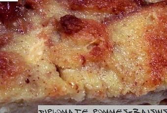 Le voici donc, ce diplomate, à base de tranches de brioche et agrémenté de cubes de pommes et de raisins secs.