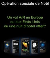 Jolie promo de Noël chez le constructeur de téléphones HTC. Pour l'achat d'un de ses 5 mobiles dernier cri en version nue (Touch Viva, 3G, Diamond, Pro et HD), une nuit d'hôtel, voire des billets d'avion, vous seront offerts pour un séjour en France, en Europe ou aux Etats-Unis selon le modèle choisi. Ca vaut le coup d'y réfléchir si vous envisagez de changer de téléphone ! Offre valable du 24 novembre au 31 décembre.Descriptif complet de l'offre et modalités à lite sur ce PDF.