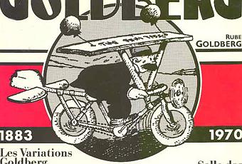 Cependant Goldberg est aussi fameux pour ces dessins d’assemblages extravagants, dont le but est de nous faciliter le quotidien, qui en font le père spirituel de Géo Trouvetou. Ses bandes intitulées L’invention de la semaine seront à la source des stratagèmes redoutables développés par Wile E. Coyote lorsqu’il tente d’attraper un Bip Bip bien contrariant, ou alors reprise par Bruno Podalydès dans son adaptation cinématographique du Mystère de la Chambre Jaune
