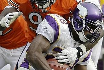 Lucas: Ce match entre deux équipes relativement semblables, risque d'être plutôt serré. Les deux ont une attaque et une défensive correcte (sauf la défense contre la passe des Bears, mais bon...) ce sont donc deux équipes assez équilibrées. Là où cela va se jouer je crois, c'est au poste de porteur de ballon, car les deux équipes une mauvaise attaque aérienne (quoique les Vikings pourrait surprendre la très poreuse défensive contre la passe des Bears), et , selon moi, Adrian Peterson est dans une classe à part, tandis que Matt Forte est bon, mais pas extraordinaire. La domination du Purple Jesus propulsera les Vikings à une victoire de 21-17