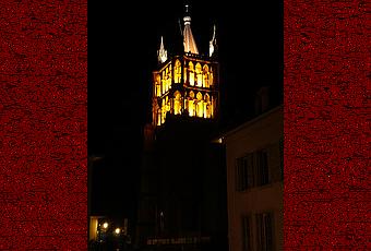 Hier soir, en rentrant de l’école, au pied de la Cathédrale, j’ai croisé deux messieurs qui travaillent à l’éclairage public de la Ville de Lausanne. Ils s’apprêtaient à gravir les 224 marches et plus qui leur permettront d’atteindre les projecteurs colorés qui, comme chaque année, colorient le monument pour les fêtes.