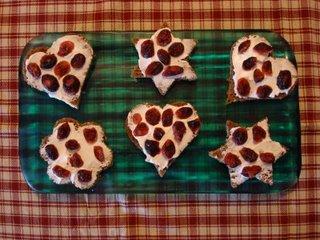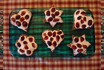 Partager les tranches de pain. Découper des formes avec des emporte pièces. Tartiner de suite avec du chèvre frais. Poser sur un plateau puis décorer avec les canneberges.
