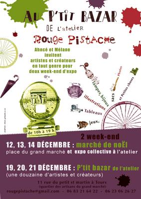 Justement je serai présente les 13 et 14 décembre à l'Atelier Rouge Pistache à Tours pour leur Petit Bazar de Noël dont voici l'affiche.