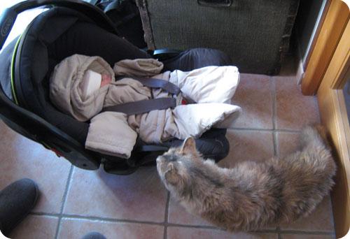Doux euphémisme pour dire que The Bump lui fiche une trouille bleue. Environ 30 secondes après avoir pris cette photo, The Bump ayant émis quelques gargouillis, on a perdu le chat quelque part dans la maison.