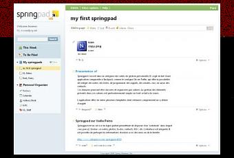 Springpad s’inscrit dans la catégorie des outils de gestion personnelle. Il s’agit en fait d’une application comparable à Backpack, comme le souligne Olivier Ruffin, qui offre la possibilité de rédiger des notes, des listes, de programmer des rappels, des rendez-vous, ou saisir des contacts.