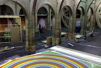 Le weekend dernier à Bordeaux s’est déroulée une grande première pour la ville et son activité culturelle : une exposition ambitieuse sur trois jours autour de la culture psychédélique passée et présente. Le nom ? IAO en référence au célèbre mantra de Gong. Le lieu ? Le magnifique entrepôt du musée d’arts contemporains qui avait déjà accueilli au printemps denier une rafraichissante expo sur Brian Wilson et ses boys. Mêlant habilement installations, scènes et sculptures grâce à la collaboration de l’artiste Lili Reynaud Dewar, ce rassemblement d’archives, d’objets et d’œuvres droguées n’a pas manqué de spectaculaire. Jugez-en plutôt : le cadre déjà, avec ses voûtes religieuses et monumentales, mais surtout le décor, avec deux yeux psychédéliques de plus de vingt mètres de haut se réfléchissant dans des murs de miroirs disposés ici ou là, vraiment impressionnant, je n’ose imaginer ce que ça aurait donné si j’avais consommée une omelette magique avant de venir.