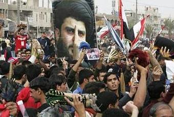 28 novembre 2008 - Bagdad, Sadr City - Une des importantes manifestations de soutien au mouvement de Moqtada al Sadr, clairement opposé à l'accord de soit-disant retrait des troupes américaines - Photo : AP/Karim KadimLes médias et les politiciens républicains et démocrates lui ont attribué le mérite d'empêcher la guerre désastreuse de l'impérialisme américain de devenir un autre Vietnam, c'est-à-dire une défaite honteuse.