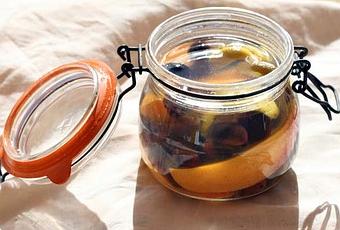 Sur le même principe on peut parfumer soit des olives désamérisées, soit des olives en conserve dessalées, avec de nombreux fruits du jardin.