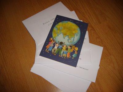 Evidemment je ne vais pas vous cacher ma très légère déception devant le manque de demande de cartes de Nowel dédicacées. Il est clair que je ne m'appelle pas Boulet mais je m'attendais quand même à plus ! Bref pas grave ! D'abord parce que je l'ai fait pour la bonne cause et ensuite parce que cela m'a permis de "rencontrer" de nouvelles visiteuses de ce blog (Emilie, Cécile, Diana). Du coup voilà, j'ai fait des petits dessins tout simples mais avec coeur. Alors merci à vous (ça part normalement aujourd'hui). Et pour ceux qui auraient changé d'avis, ce n'est pas trop tard, il me reste des cartes.