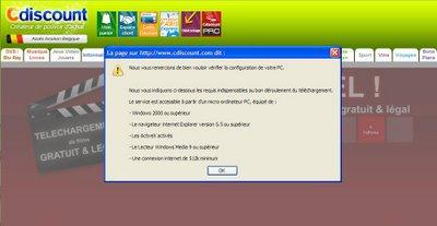 Les prérequis techniques vont plus loin : l'accès à l'offre n'est autorisé qu'avec le navigateur Internet Explorer, versions 5.5 et supérieures, et la consultation des films ne peut se faire qu'avec le lecteur Windows Media Player, versions 9 et supérieures. En outre, il est indispensable d'être identifié comme résidant en France, et de créer un compte sur Cdiscount. Une fois téléchargés, les films pourront être consultés autant de fois que souhaité, durant un laps de temps de quinze jours. Encodés au format WMV, en résolution DVD, les fichiers pèsent environ 1,20 Go.