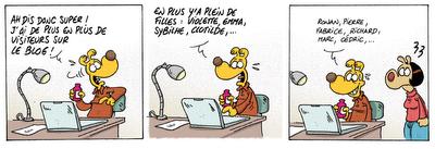- clic pour lire drôlement bien - Y'a des mystères que je ne m'explique pas (du moins dans un premier temps) et puis j'ai souvent la solution un peu plus tard du genre : Y'a plein de visiteurs d'un coup sur le blog et il est même pas 8h du mat ! Bref en cadeau donc, un petit strip colorisé - ça s'appelle de la réactivité :))
