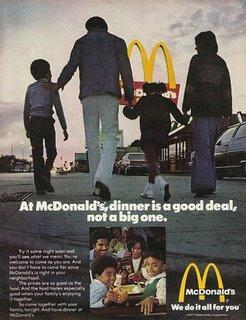 « Get your fries in the large size » susurrait suavement Mc Do, à une époque où les entreprises de Junkfood ne se préoccupaient pas trop de considérations nutritionnelles ou éthiques.