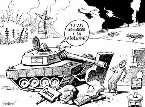 Alors que nous faisons face à l’autoritarisme maintenant ouvert de Stephen Harper chez nous, la “vie” (et surtout la mort) suit son cours à Gaza. Après le “calme” relatif de cet été, la machine de guerre terroriste d’Israël continu imtoyablement son agression contre le peuple palestinien, une agression doublée d’une occupation brutale vieille de plus de soixante ans. En effet, Tsahal (l’armée israélienne) a décidé qu’elle en avait assez de simplement laisser les palestiniens de Gaza crever de faim et de maladie, il est maintenant temps de les bombarder massivement! La “seule démocratie au Moyen-Orient” (oubliez le Liban: ce pays, gênant pour leur réthorique démagogique, n’existe plus selon nos média) a parlé… et sa grande proclamation est: “Fuck la paix!”
