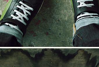 Mise à part cette aventure rocambolesque qu’on en vit plus assez des comme ça, une série un peu particulière because j’ai acheté un truc de ouf malade que je porte jamais mais que pour les grandes marches de distrib’ c’est pratique: des baskets! Oui oui! Z’avez bin entendu, des baskets en cette période de sécheresse budgétaire. Vous remarquerez la petite touche en plus, hormis le superbe cuir marron dans lequel elles sont taillées, les petites bandelettes argentées, si c’est pas la classe ça… Puis histoire d’en rajouter une couche et d’être hyper inspirante pour la jeunesse :selapète: j’ai rajouté des lacets accordés aux petites bandelettes… Ouaiiiiiss!! :summumdelafrime: