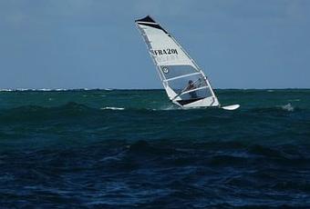 Je raconte pas de blagues... C'est bleu, n'est-ce pas ? Au loin, c'est Là-bas... Je rêve pas, y a pas de nuages! Juste la barrière de corail, du vent oui, un peu de mer . Les planches filent. Sur le plan d'eau, les opti, les lasers, les cata.